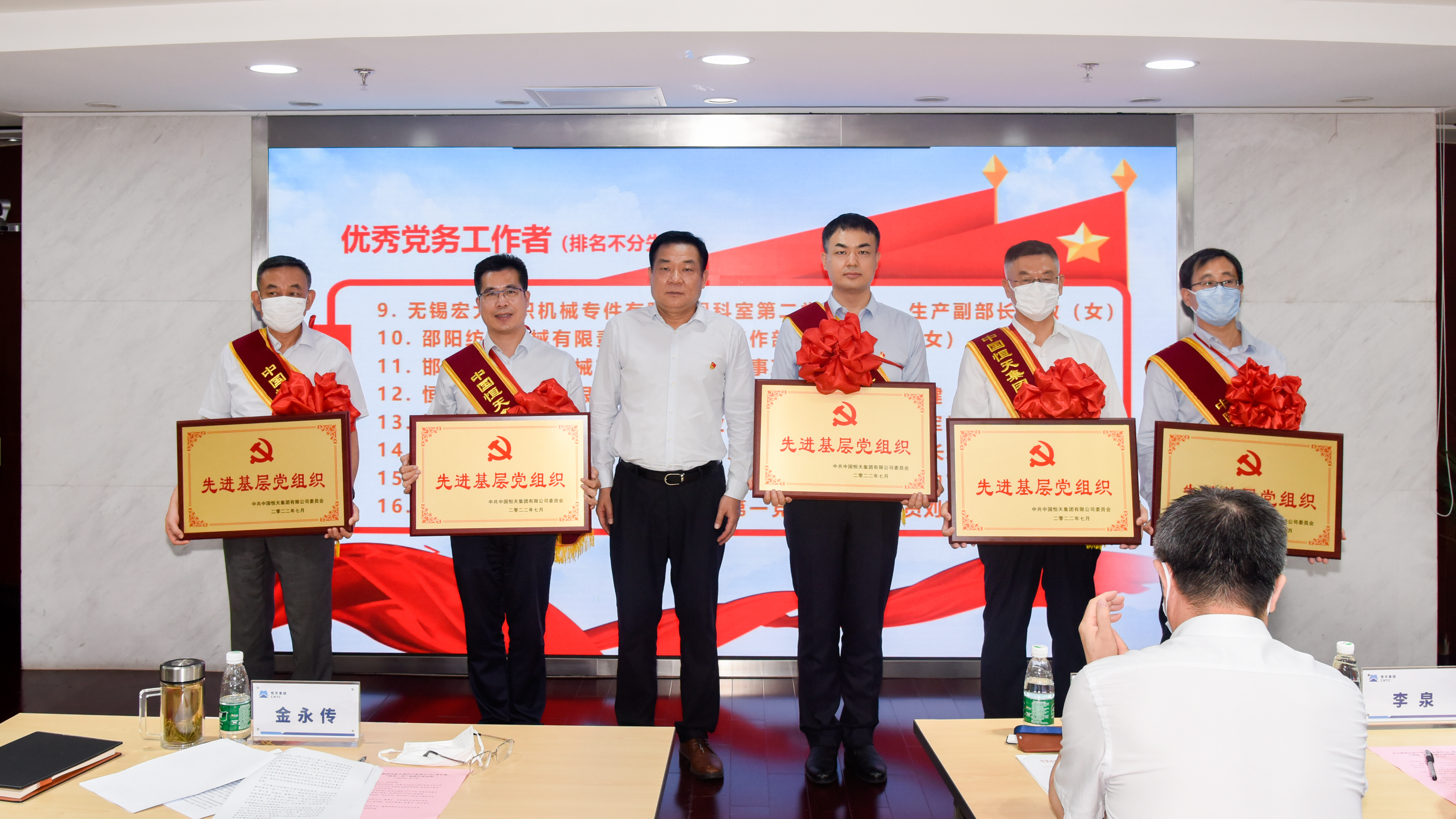 恒天集团领导班子成员为恒天集团2020-2021年度先进基层党组织、优秀党务工作者、优秀共产党员代表颁奖。